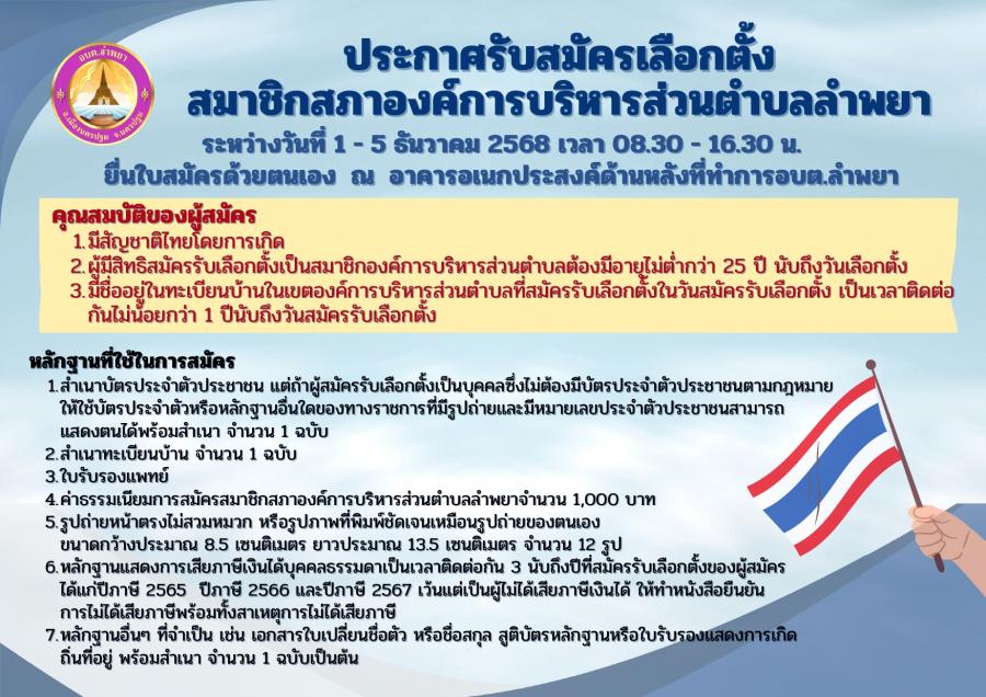 ประชาสัมพันธ์การรับสมัครเลือกตั้งนายกองค์การบริหารส่วนตำบลลำพยาและสมาชิกองค์การบริหารส่วนตำบลลำพยา